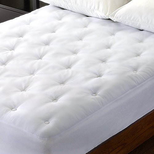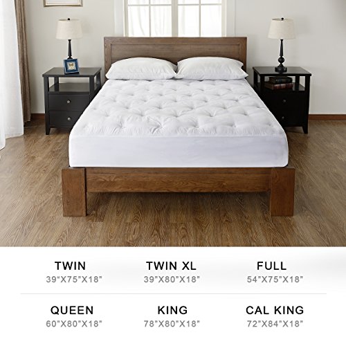 -. Brand : REST SYNC -. Feature : There are six size; knitted skirt stretches to fit up to 18 inch deep mattress / The top is made of peach skin fabric that gives superior comfort against your skin. / Quilted mattress pad cover is durable and long lasting and is significant for two main reasons that are to keep your mattress free of stains and prevent exposure to dust mites and other potential allergens / The super soft mattress pad with down alternartive filling has additional loft that provides extra comfortable sleep and protection; The elastic all around secures pad into position / The cover is machine washable and is tumbled dry for easy maintenance -. Label : REST SYNC -. Manufacturer : REST SYNC -. ProductGroup : Home -. ProductTypeName : HOME_BED_AND_BATH -. Publisher : REST SYNC -. Studio : REST SYNC -. Title : REST SYNC Down Alternative Mattress Pad/Topper-Circle Quilted-Peach Skin Top, Mattress Cover Stretches up to 18 Inches Deep, White