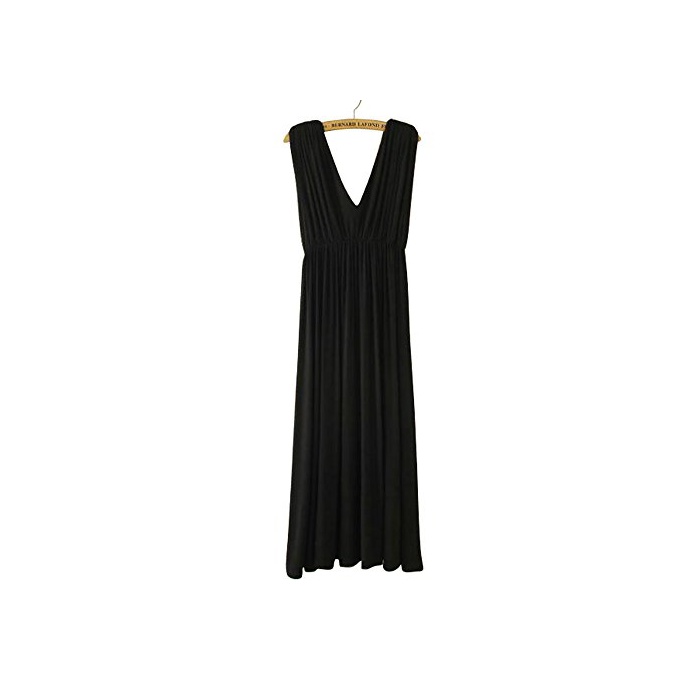 (Les Hiboux) 신축성 발군 롱 원피스 포멀 노슬리브 맥시장 마타니티 원피 드레스 (블랙)