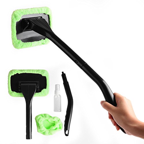 -. Feature : Windshield Cleaning Wiper This windshield cleaning wiper helps you cut your time and clean cost in half. It buffs and shines glass while removing dirt, dust and pesky fingerP.R.Ints. Its handle is ergonomically angled to help relieve stress on arms and the notches at end ensure firm grip while cleaning. With the 360 degree rotation capability of pivoting pad, it reaches tough spots easily. It also offers a bonus of extra microfiber bonnet and water sprayer. Features: / Easily removes dirt, dust, and pesky fingerP.R.Ints Ergonomically designed stress-relieving handle that has 4 notches at end to help firm grip Pivoting pad allows 360 degree rotation for easy use at whatever angles Soft microfiber bonnet can be easily wrapped on the pad or removed for wash Handle can be disassembled into halves for storage Includes an extra soft microfiber bonnet for replacement Includes a water sprayer Good for all size cars, trucks, SUVs, and RVs / Specifications: Material: ABS plastic, microfiber Cleaning pad size: 4.13"×6.02" (L×W) Handle length: 16.14" Water sprayer size: 3.94"×0.98"×0.98" (L×W×H) Weight: 5.42oz Package Size: 4.4"×1.5"×11.06" (L×W×H) Package weight: 0.57lbs