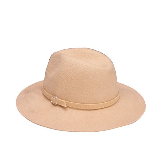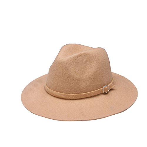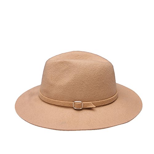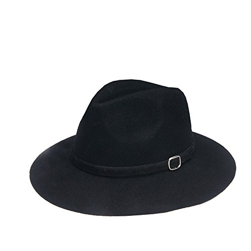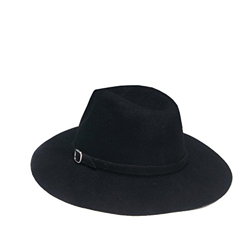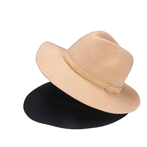 (missfiona)/Accessories/Hats/DIRECT FROM USA/missfiona Womens Warm Wool Felt Jazz Fedora Hat Wide Brim With Band Buckle Solid Color