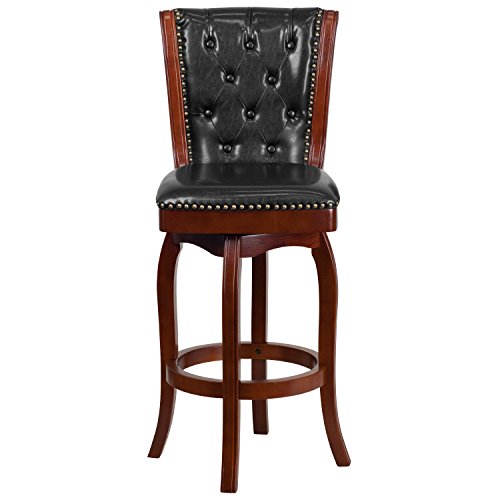 -. Title : Flash Furniture 30'' High Wood Barstool with Black Leather Swivel Seat