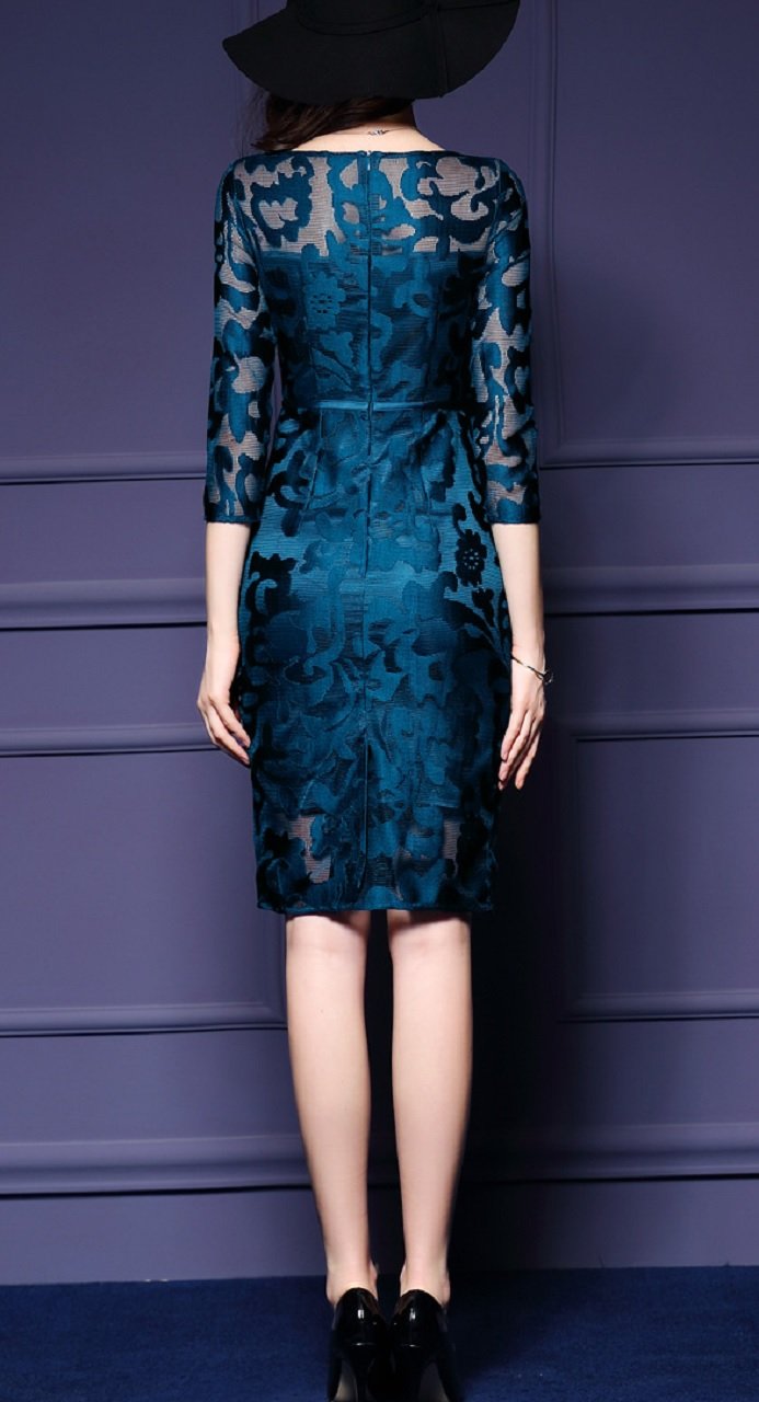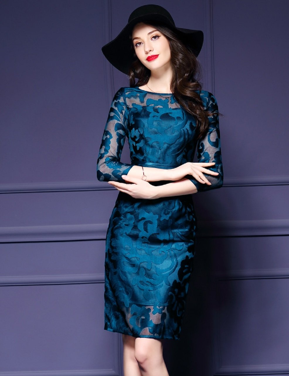 Elegant dress length on the knee directs a sophisticated feminine style filled with elegance.
