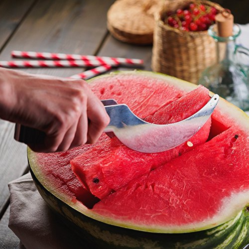 A MULTIPURPOSE KITCHEN UTENSIL: This top quality watermelon slicer can help you slice, core and serve many types of juicy fruit as well as some desserts such as cake.