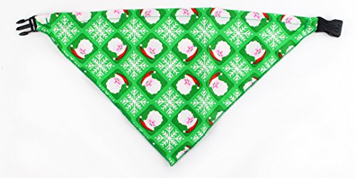-. Binding : Misc. -. Brand : Latham & Company -. Feature : Medium fits 14" neckline / Quick release buckle / Machine washable / Green bandanna with repeating santa and snowflake design / Easy way to give your dog a comfortable and festive touch this holiday -. Label : Latham & Company -. Manufacturer : Latham & Company -. PackageQuantity : 1 -. ProductGroup : Pet Products -. ProductTypeName : PET_SUPPLIES -. Publisher : Latham & Company -. Size : Medium -. Studio : Latham & Company -. Title : Medium Santa and Snowflakes Christmas Dog Bandanna