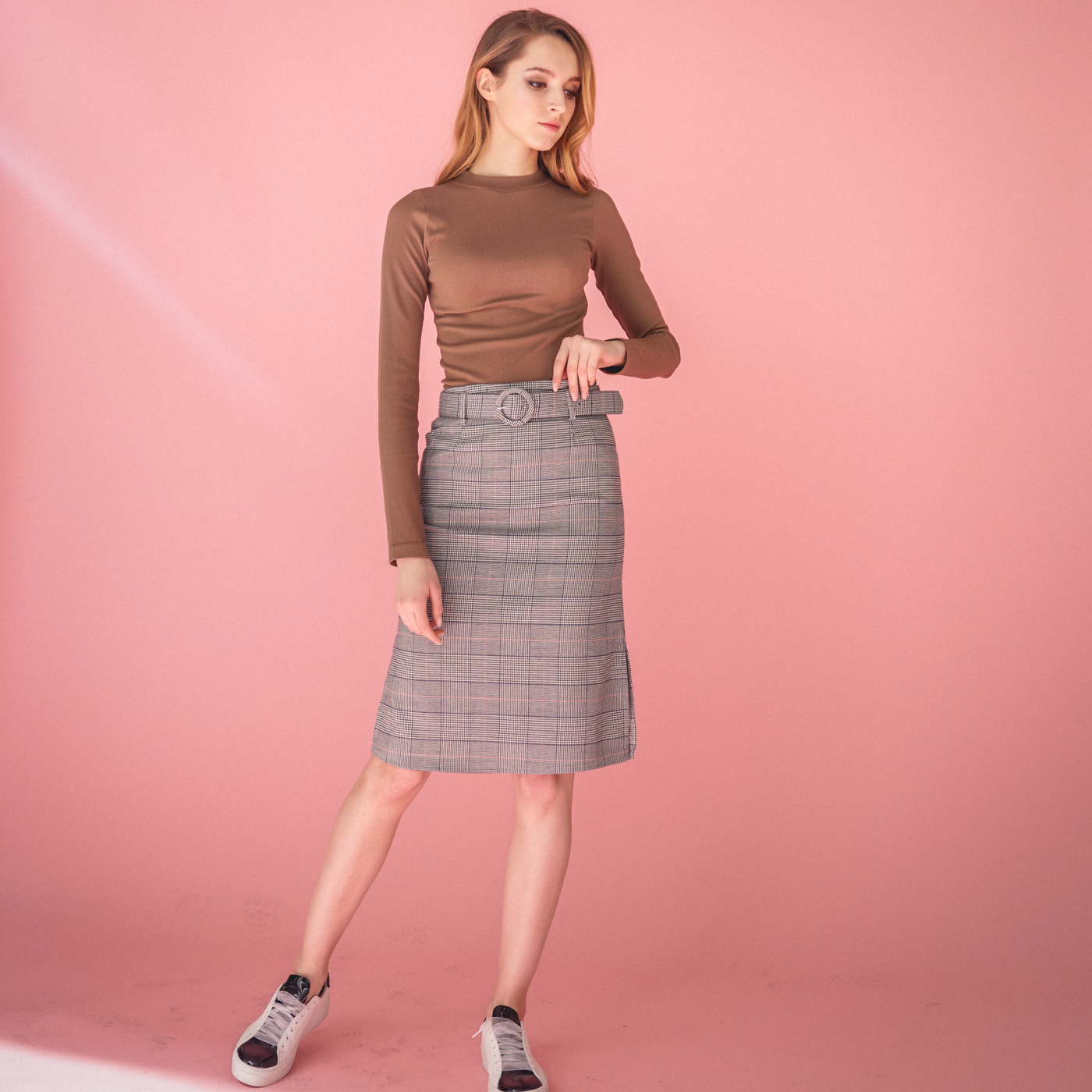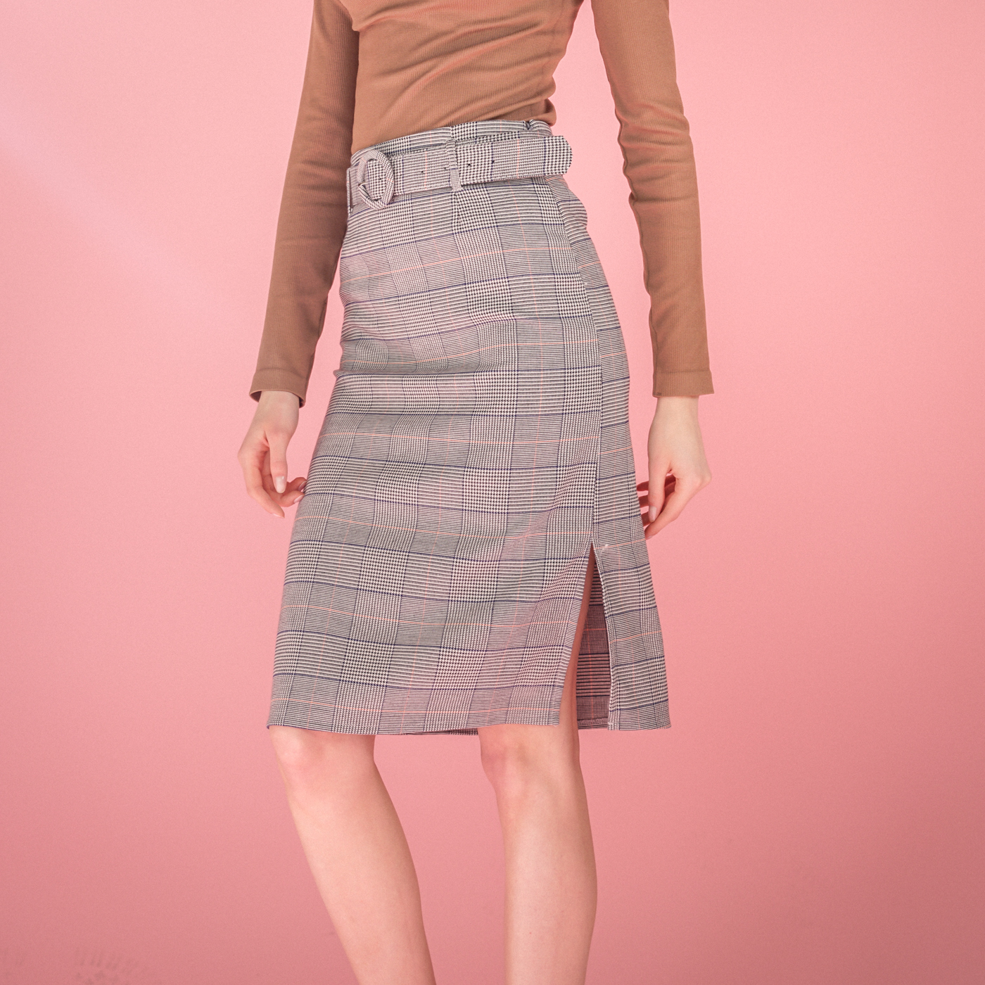 고급스런 글렌체크 패턴의 H라인의 스커트입니다.