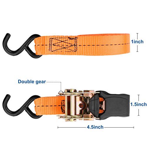 Ratchet Tie Down Straps LIBERRWAY 15 Ft 1686 lbs Load/ 3372 lbs Break Strength Cargo Tie Downs for Motorcycle Truck Cam buckle 4 Pk Orange