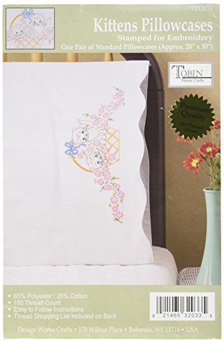 Tobin Stamped Pillowcase Pair Stamped Cross Stitch Kit for Embroidery, 20 by 30-Inch, Kittens