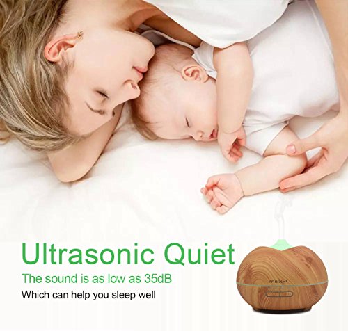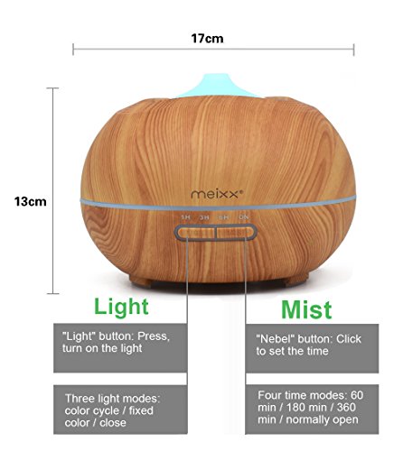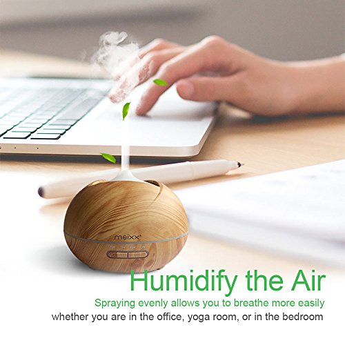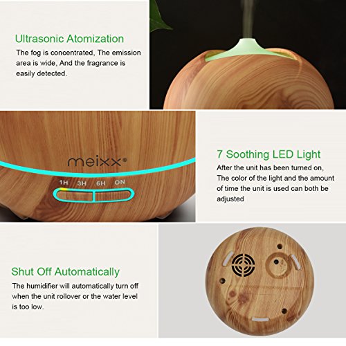 MEIXX 400ml Essential Oil Aroma Diffuser, Wood Grain Winter Ultrasonic Humidifier, Cool Mist Aromatherapy, 4 Timer Settings & Waterless Auto Shut-Off, 7 LED Light Colors for Bedroom Lving Room Office