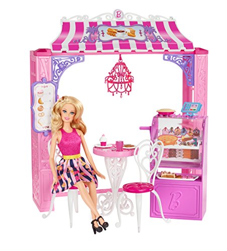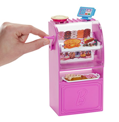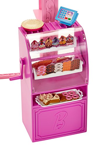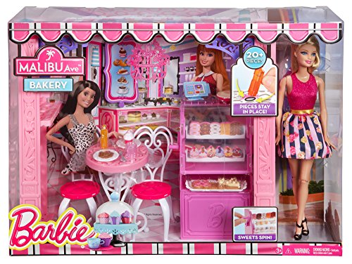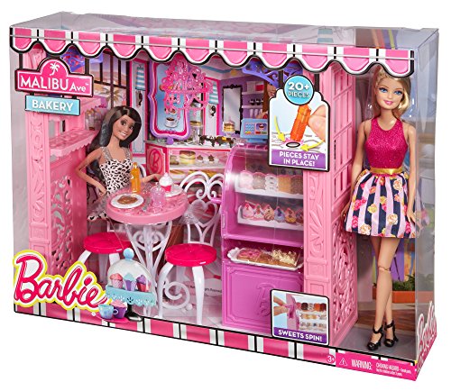 -. Feature : Barbie doll loves to shop at some of her favorite stores on Malibu Ave / Choose from a glam Market, pretty Pet Boutique and chic Bakery (each sold separately), each with a fabulous shop frame featuring Barbie signature style / Each has a unique fun feature, such as a spinning display case at the Bakery / Barbie doll, wearing a fabulous fashion, is included to extend play opportunities! / Themed accessories have a unique plug 'n play design feature that keeps them in place, making clean up easy and pieces hard to lose