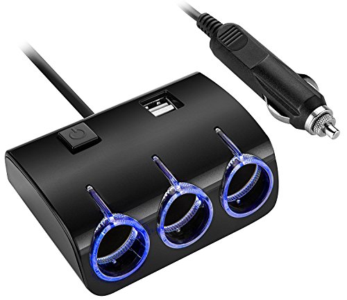 -. Feature : Three 12V/24V cigarette lighter sockets (DC outlets) provide a total power of up to 120W, enough for simultaneous use of a variety of portable appliances in your vehicle. / The USB ports are safe, high-speed charging of any 5V device: iPhones, Android smartphones, GPS's, MP3 players, iPads, tablet computers, etc / Sleek and streamlined appearance makes this car adapter/charger a perfect combination of functionality and aesthetics; Discrete and non-distracting LED to confirm connection. / 2 USB charging ports with 2.4A total output enable rapid simultaneous charging of Apple and Android products, including tablets. / Designed with high safety standards: protective circuits and high quality components prevent the product or your devices from overheating or overloading.