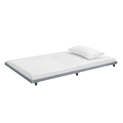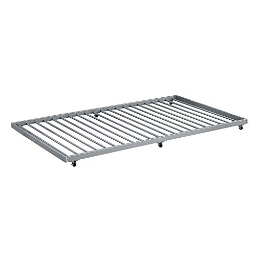 This space-saving, sturdy trundle bed is the perfect solution for a growing family, unexpected guests, or the occasional slumber party. Features a powder coated steel frame and mattress slats to support a standard Twin size mattress. Its casters provide easy storage and use making this the perfect solution for your bedroom.Feature