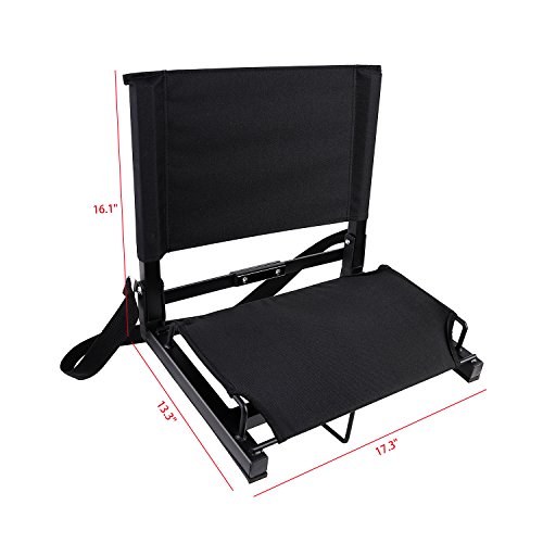 Studio : Ohuhu Publisher : Ohuhu Binding : Misc. Product Description Upgrade your viewing experience with this Ohuhu Stadium Chair. The durable steel frame and tough 600D nylon oxford perform in any weather, and the versatile construction fits virtually any metal or wood bleachers. This Ohuhu Stadium Chair also features bungee cord cushioning for keeping you comfortable during the game. Get your Stadium Chair today from Ohuhu and then you can cheer on your favorite team in comfort and style! Specifications: -Material: Steel 600D oxford -Maximum Supporting Weight: Up to 400lbs. -Folding Dimensions: 14.1 x 17.5 x 4.3inch -Weight: 6kg / 12.4lbs -Color: Black Package Includes: 2 x Stadium Chair