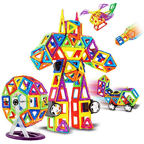 -. Feature : GREAT MAGNETIC BUILDING BLOCKS SET-Total 138 pieces.40 squares, 40 triangles,6 long triangle,2 wheels,1 Ferris wheel(8pcs),2 hexagon,40 tiles,41 numerals,1 manual,1 storage box,1 note paper.An idea booklet included for your easy reference to build various kinds of models.This magnet toys set can be combined into many patterns,such as dogs,planes and other construction.Kids learn colors and shapes while playing,develop their creativity and mind in new ways. / SPARK YOUR KID'S IMAGINATION-Never too early to start developing kids creativity. Children can acquire strong sense of color, geometrical shapes including 3D forms numbers counts, magnetic polarities & architectural design at early age.Fits for all age kids,a best way for them to explore the world of geometry and architecture.Kids can follow the idea booklet or create their own design which inspires their imagination ability and creativity and have fun!! / PORTABLE AND ENDLESS POSSIBILITIES-This set comes with an easy-carrying plastic box which stores all the pieces. Perfect for use at home, in schools and day care centers.Super easy to clean them up since magnet sticks together. This magnet building toys with a healthy environmental protection, puzzle security, modeling Variety, 2D-3D visual experience, is a toy is a teaching tool can enhance the interaction between parents and emotional exchange!Use under the adult's Supervision. / PRODUCT SPECIFICATIONS-Material:made from the highest quality,durable and non-toxic ABS plastic,strong magnets and smooth edges keeps your kid's little fingers safe.Package Size:29*20.5*16cm/11.4*8.1*6.3inch;Package Included: 1 x Magnetic Building Blocks Set / 100% SATISFACTION&MONEY BACK GUARANTEE: Pls CHECK your items Before Ordering! Free Money back Guarantee: 60 days.7-15 business days for delivery normally,shipped by quick USPS with free tracking number.(Note:If Damaged in transit will be Resent Freely again!Just Message us First!)