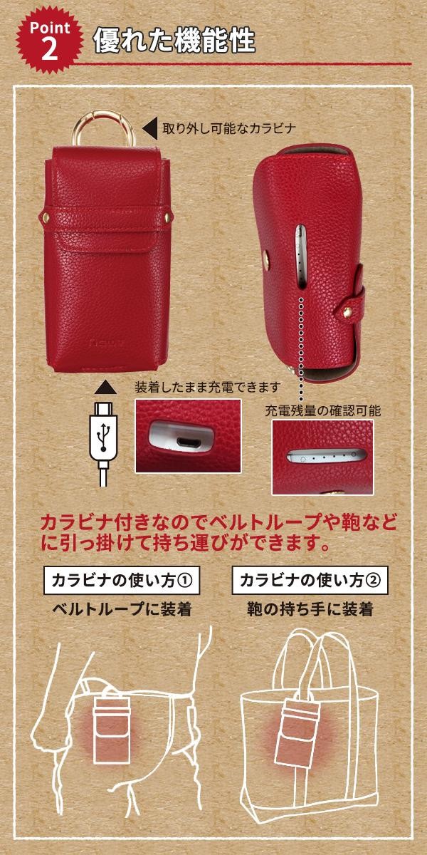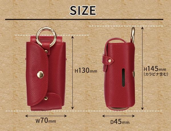 iQOS本体、ヒートスティックの箱、クリーナーをまとめて収納できる、iQOS専用ケースです。ケースを装着したままでも充電可能。ケース側面には充電残量の確認ができる窓も付いています。カラビナ付きなので、ベルトループや鞄に引っ掛けて持ち運びも便利です。シックなレザー素材使用のシンプルデザインなので、男女問わずおすすめです♪ |
