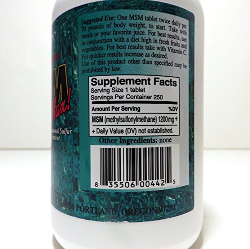 -. Binding : Health and Beauty -. Brand : Rich's Distributing -. Feature : Each tablet contains 1200 mg of pure MSM / Working with antioxidants, MSM neutralizes free radicals* / MSM may improve collagen production and healing* / Softened and smoothed scar tissue may result from MSM use* / MSM is also known as methylsulfonylmethane and is a sulfur compound. -. Label : Rich's Distributing -. Manufacturer : Rich's Distributing -. MPN : 5161600305 -. PackageQuantity : 1 -. PartNumber : 5161600305 -. ProductGroup : Health and Beauty -. ProductTypeName : HEALTH_PERSONAL_CARE -. Publisher : Rich's Distributing -. Studio : Rich's Distributing -. Title : Rich's Maximum Strength MSM Max, 1200 Mg Tablets