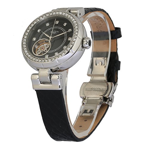 Rotary Ls003-A-13 Women's Project/D London Auto Black Leather And Dial Ss Watch