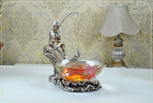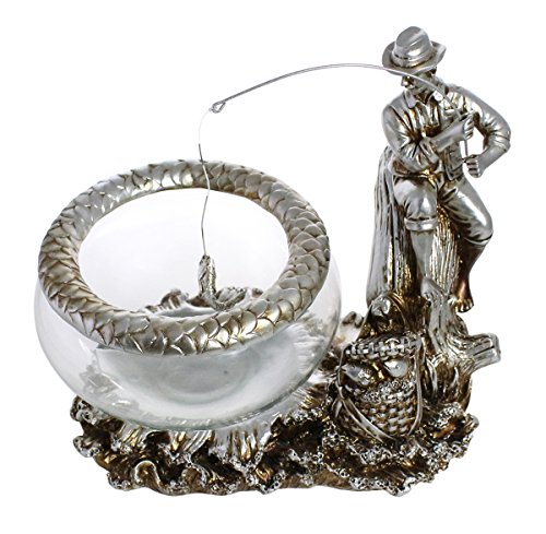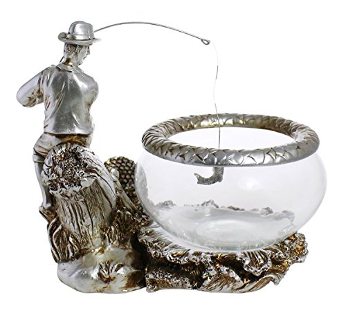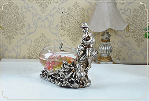 DURABLE MATERIAL MADE - Made with polyresin for the figurine, fishing pole, scaled ring, and the fishbowl made from glass, with the capacity that you may put small fish in it. This fish bowl is durable and firm enough to be placed and decorated in any room settings.