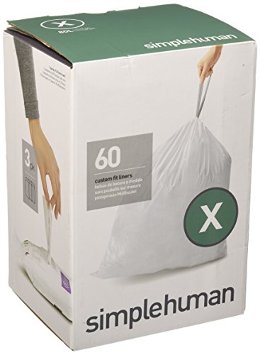 simplehuman Code X Custom Fit Liners, Extra Large, Ultra Strong Trash Bags, 80 Liter / 21 Gallon, 3 Refill Packs (60 Count)