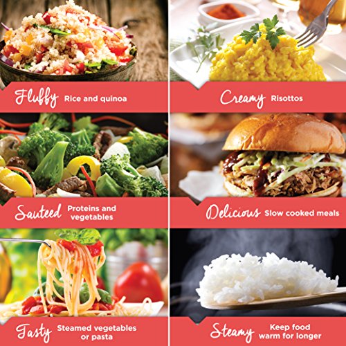 Six Preset Functions - This multi-function appliance has presets for: rice, risotto, pasta, slow cook, sauté, and keep warm. 20 Cups Cooked Rice - The large capacity cooking pot yields up to 20 cups of cooked rice (10 cups, uncooked) for full, family-sized portions