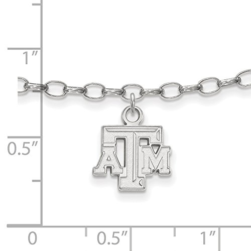 Solid 925 Sterling Silver Texas A&M University Anklet - with Secure Lobster Lock Clasp (11mm)
