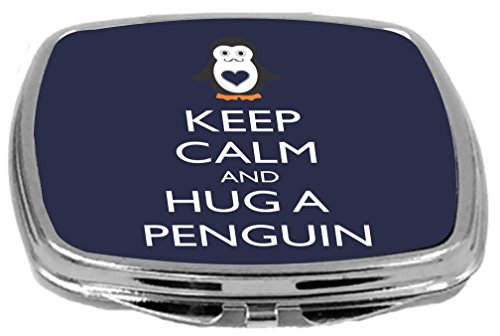 Rikki Knight Compact Mirror, Keep Calm and Hug a Penguin Blue