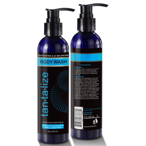 New Self Tanning Exfoliator and pH Balancing Body Wash to Enhance and Extend Sunless Tan Indefinitely!tan-ta-lize�Self Tan Exfoliating and pH Balancing Body Washsmoothes away dry rough skin for a more even Sunless Tan�premium gentle cleansing daily body wash that is perfect for maintaining your beautiful tan after use of self tanning products, professional spray tan booth, or UV tanning bedsUse�tan-ta-lize�tan-ta-lize Body Wash�Exfoliates while balancing the skin's pH to ensure a a long lasting and more natural looking tan- It includes Vitamins A,C, and E, Aloe Vera, Grape Seed and Bilberrytan-ta-lize�is manufactured in a Certified USDA Organic Facility ( FDA registered)Look Good- Feel Good and Save Time and Money with�tan-ta-lize Exfoliating Body Wash�today!�For a limited time get�tan-ta-lize pH Balancing Body Wash�risk free before the price increases! Total Satisfaction Guarantee!�Order Now!�Also order�tan-ta-lize�Natural Bronze Lotion or Airbrush Bronze Spray, and�tan-ta-lize Tan Extender�as part of the�tan-ta-lize Complete Tanning System. Order a set for a friend!�
