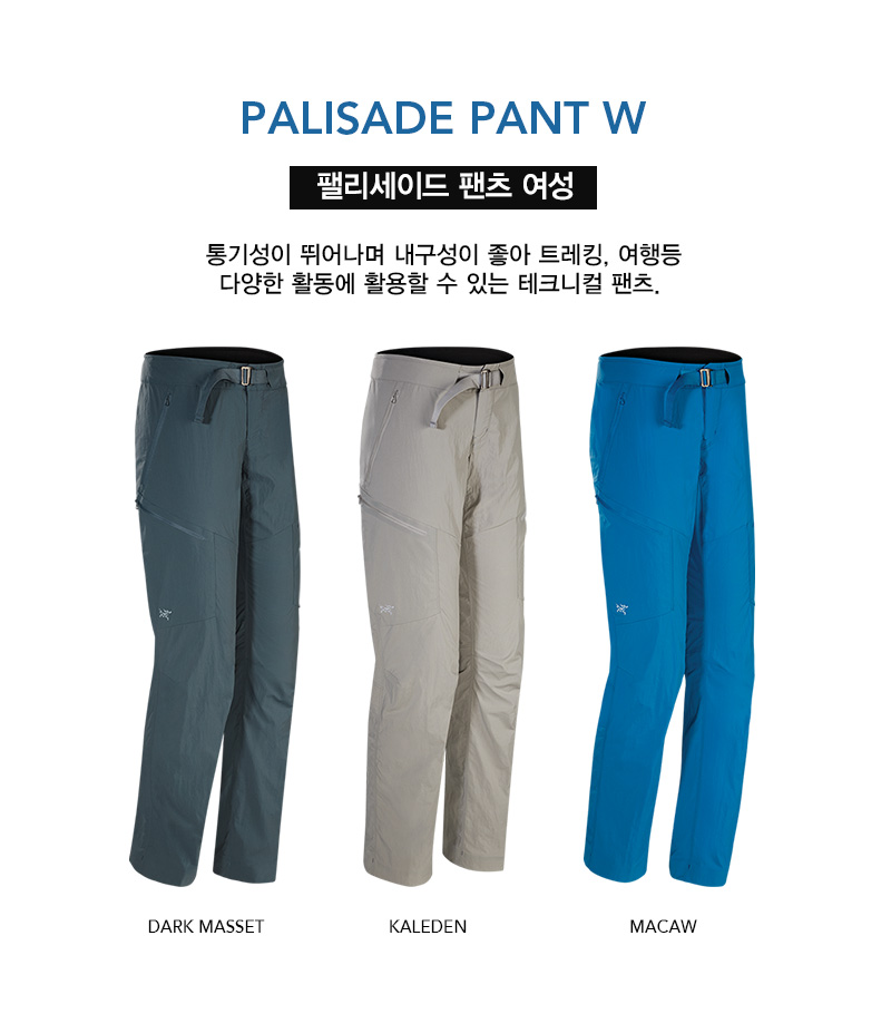통기성이 뛰어나며 내구성이 좋아 트레킹, 여행등 다양한 활동에 활용할 수 있는 테크니컬 팬츠.