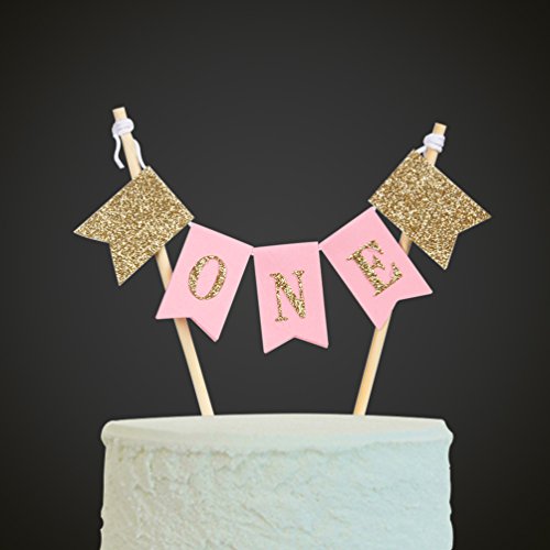 Handmade ONE First Birthday Cake Topper - 1st Birthday Cake Bunting for Baby Girl Party Supplies