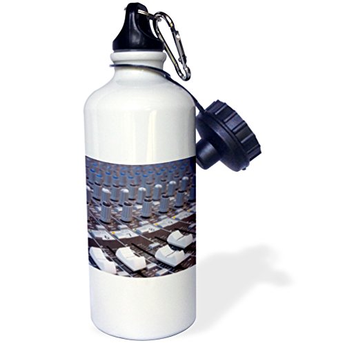 3dRose wb_155066_1 "Audio mixer board mixing engineer knobs sliders slider buttons studio recording" Sports Water Bottle, 21 oz, White