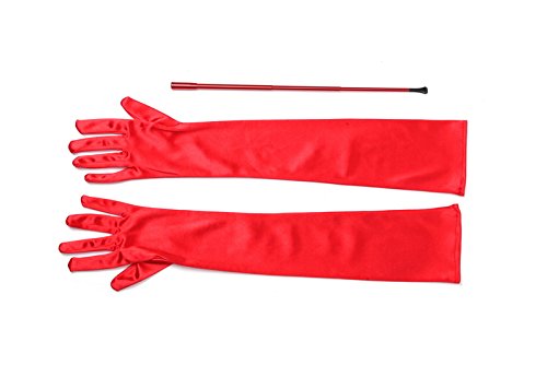 Utopiat Red Extendable Cigarette Holder and Long Satin Glove Costume Accessory Set