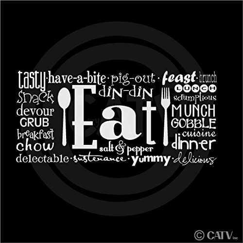 -. Binding : Kitchen -. Brand : Wall Sayings Vinyl Lettering -. Feature : Two Different Sizes Available / Comes with easy to apply instructions / Can be applied to most walls including textured / Can be removed without damaging walls / High end decorating on a budget -. Label : Wall Sayings Vinyl Lettering -. Manufacturer : Wall Sayings Vinyl Lettering -. PackageQuantity : 1 -. ProductGroup : Home -. ProductTypeName : HOME -. Publisher : Wall Sayings Vinyl Lettering -. Studio : Wall Sayings Vinyl Lettering -. Title : Eat (Phrases) wall saying vinyl lettering art decal quote sticker home decal