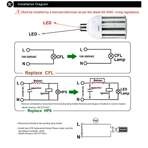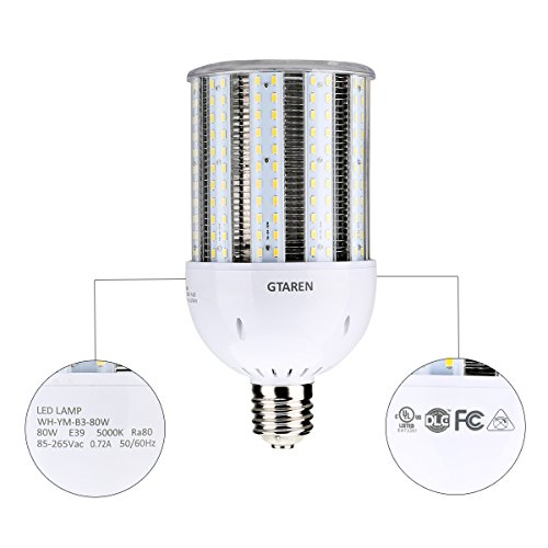 - Super Bright :10000Lm 5000k Daylight E39 Base, Can replace 250w-300w Metal Halide HID HPS incandescent Bulbs.80W LED corn bulb equal to 250W CFL bulb.