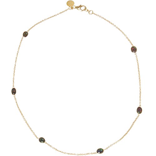 -. Title : Humble Chic Natural Opal Gemstone Station Necklace Chain Link in 14k Gold-Plated 925 Sterling Silver