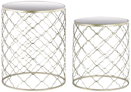 Studio : Benzara Publisher : Benzara Binding : Kitchen Product Description Add style to your interiors with this elegant decor furniture. The round nesting accent table is an incredible work of art.It has round base and a mirror top which is smooth and ultra suave. It comes in a set of two. Sports metallic Champagne (silver) finish. Size: 16.25"X16.25"X20.00"H; 14.00"X14.00"X17.75"H 0