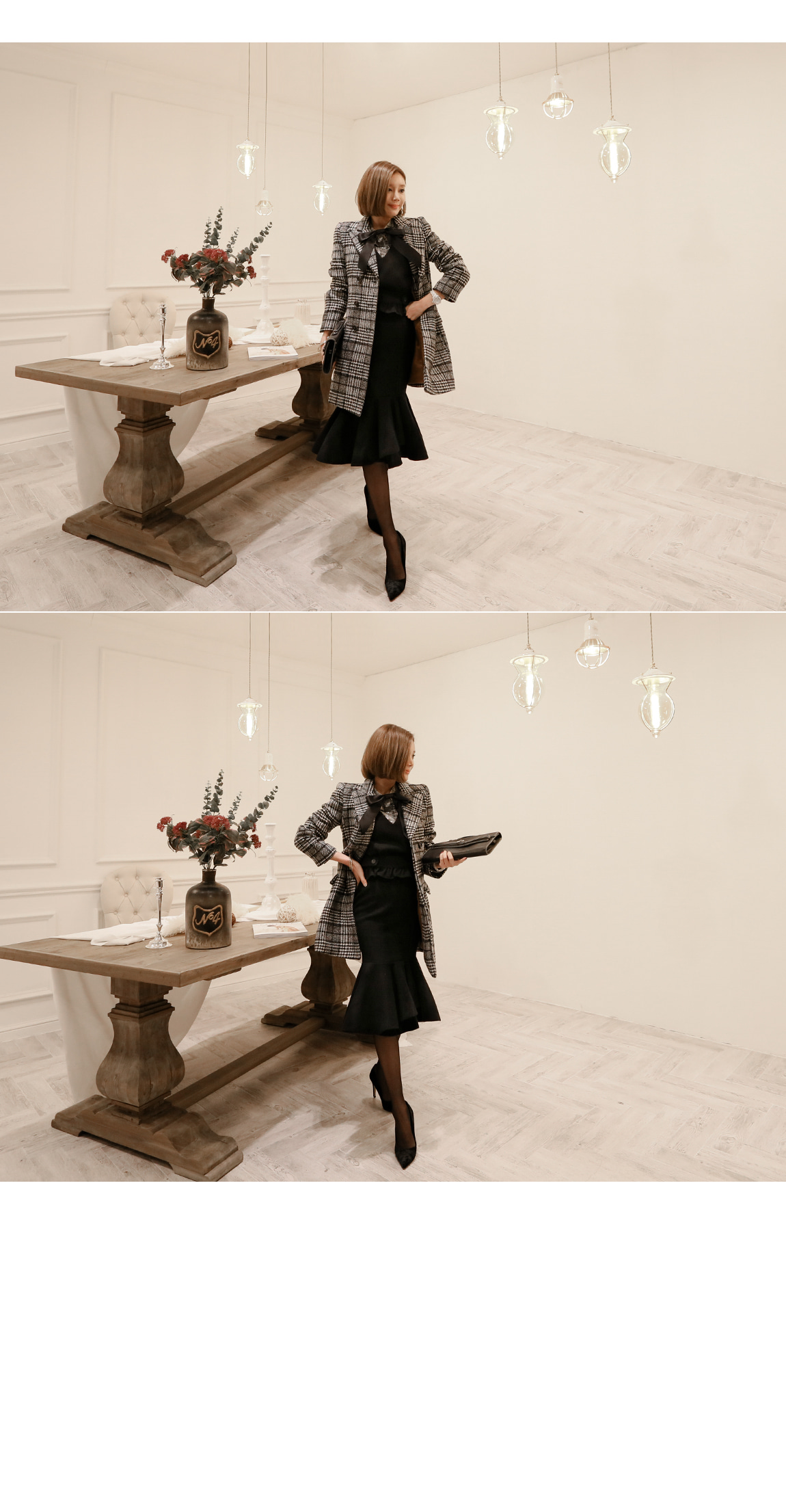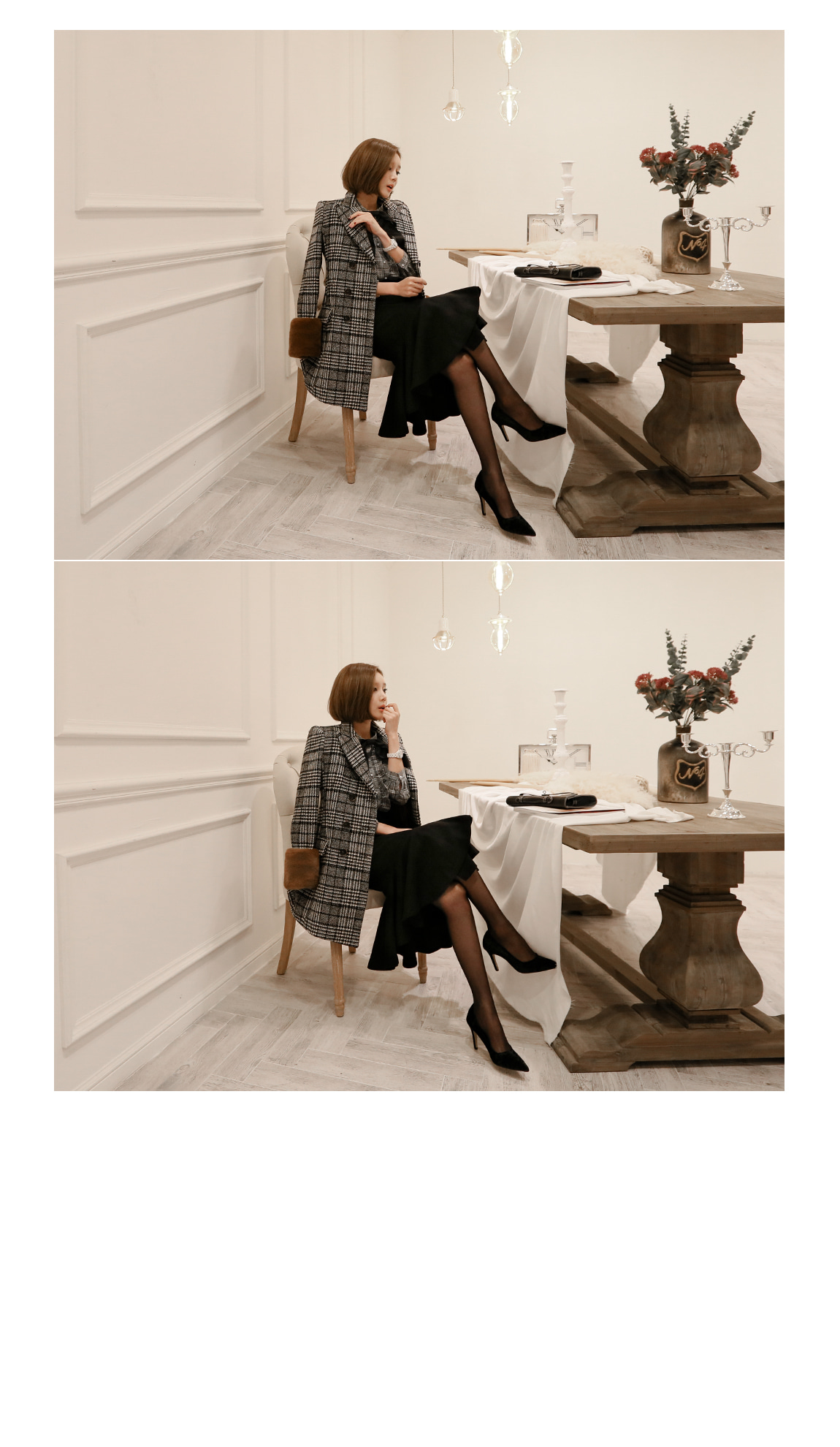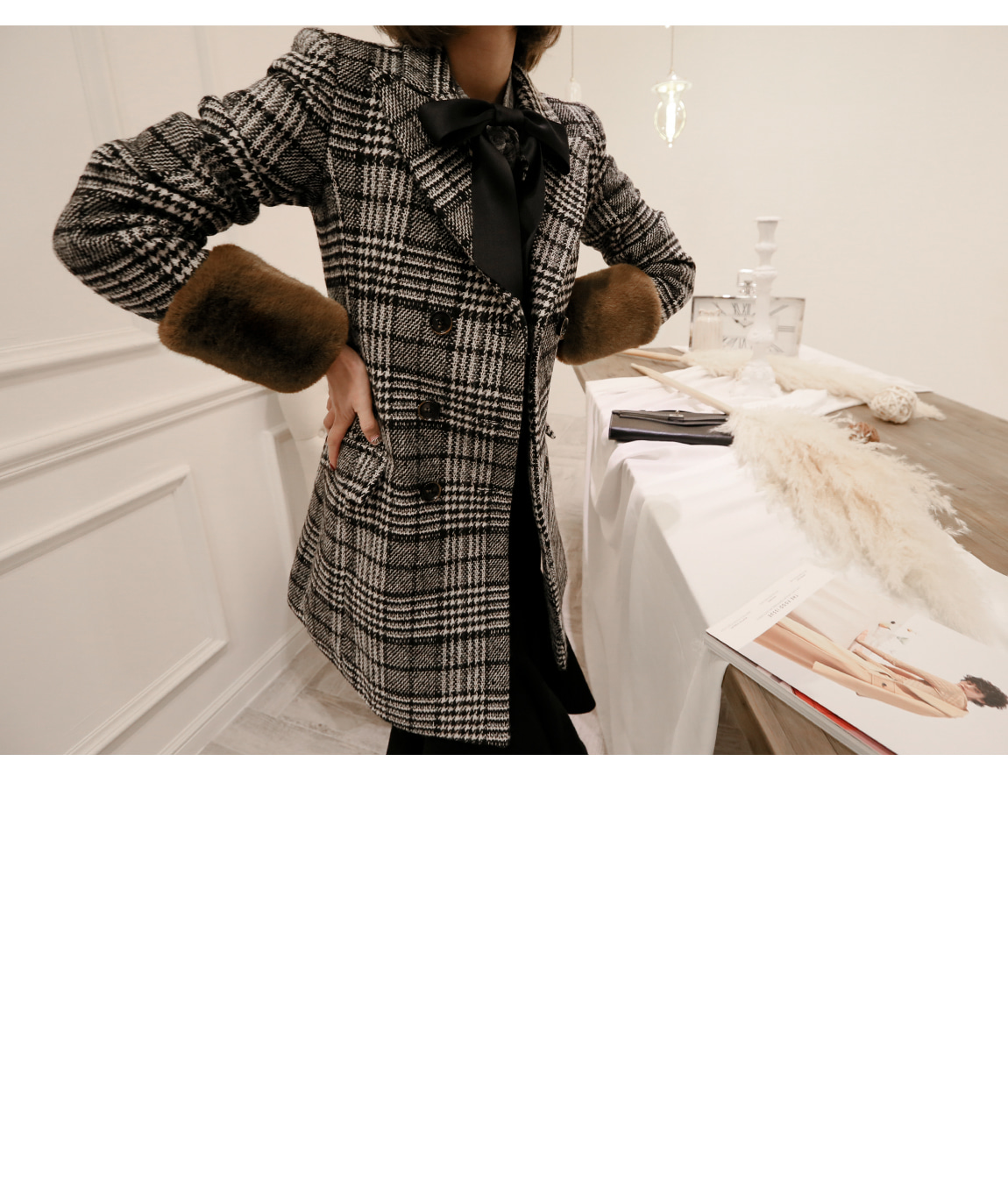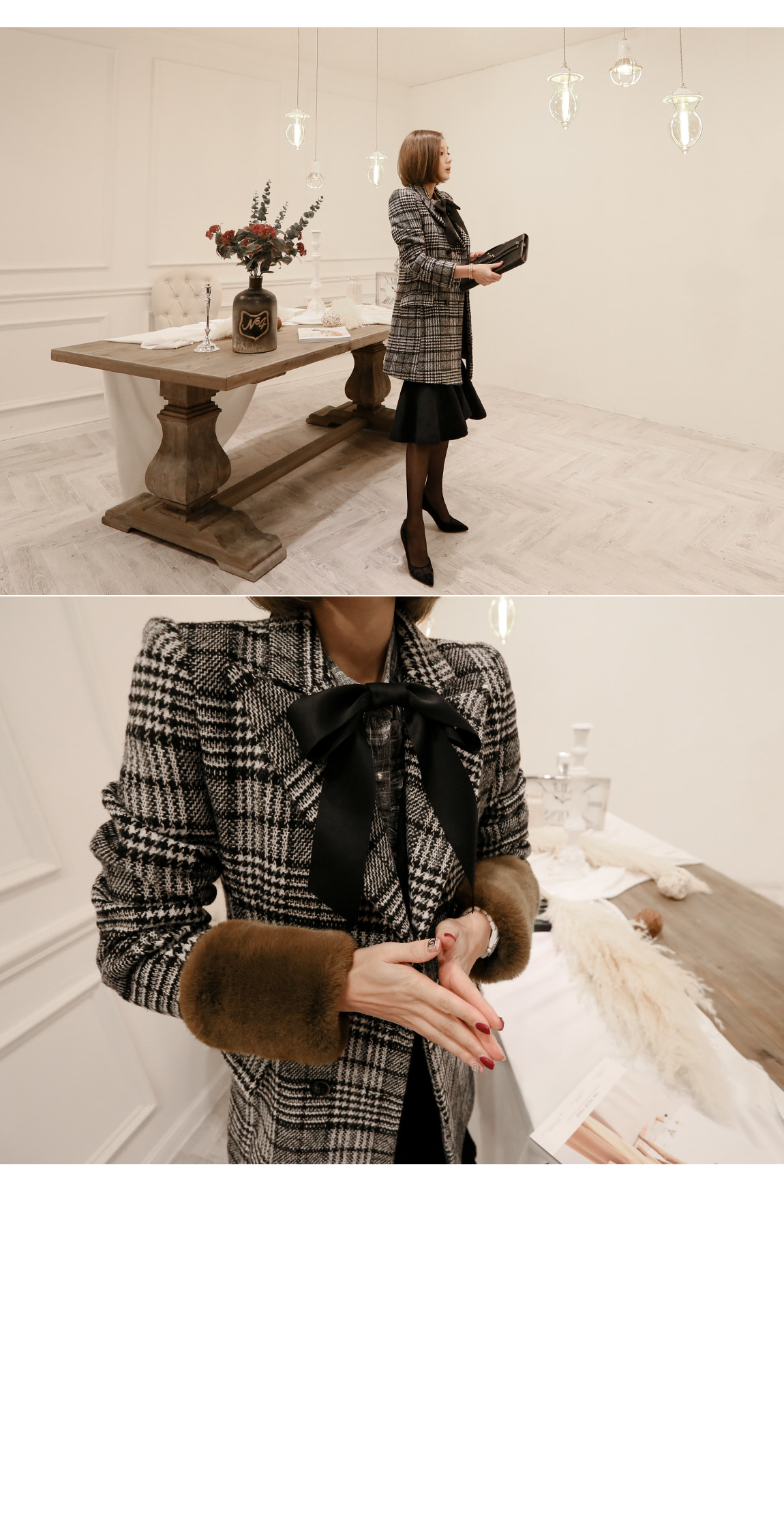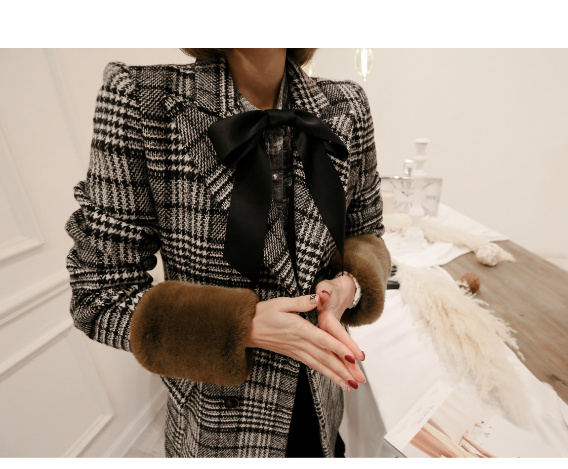 シンプルなデザインとグルレンチェックパターンで、高級なコートです