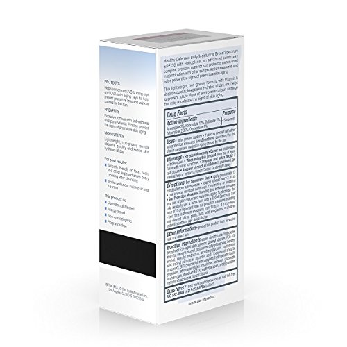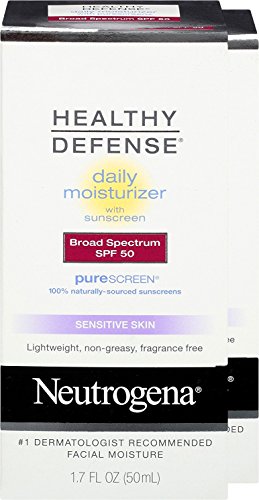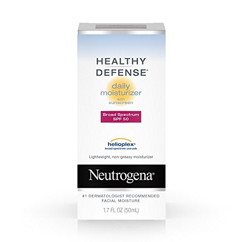 Keep your skin healthy and youthful with Neutrogena Healthy Defense Daily Moisturizer with Broad Spectrum SPF 50 Sunscreen. This complete daily moisturizer helps provide superior protection from skin aging effects of the sun, when used with other sun protection measures. It absorbs quickly and keeps skin hydrated all day. This Broad Spectrum SPF 50 lotion contains Helioplex, an advanced sunscreen technology with Broad Spectrum UVA/UVB protection. The moisturizer protects against UVB rays, which cause sunburn and UVA rays, which contribute to premature lines, wrinkles, sagging, and age spots. Formulated with the exclusive antioxidant blend with pure vitamin E, it also helps prevent environmental damage to your skin. This daily moisturizer comes from the Neutrogena Healthy Defense collection, and is the number-one dermatologist-recommended facial moisturizing product.Feature