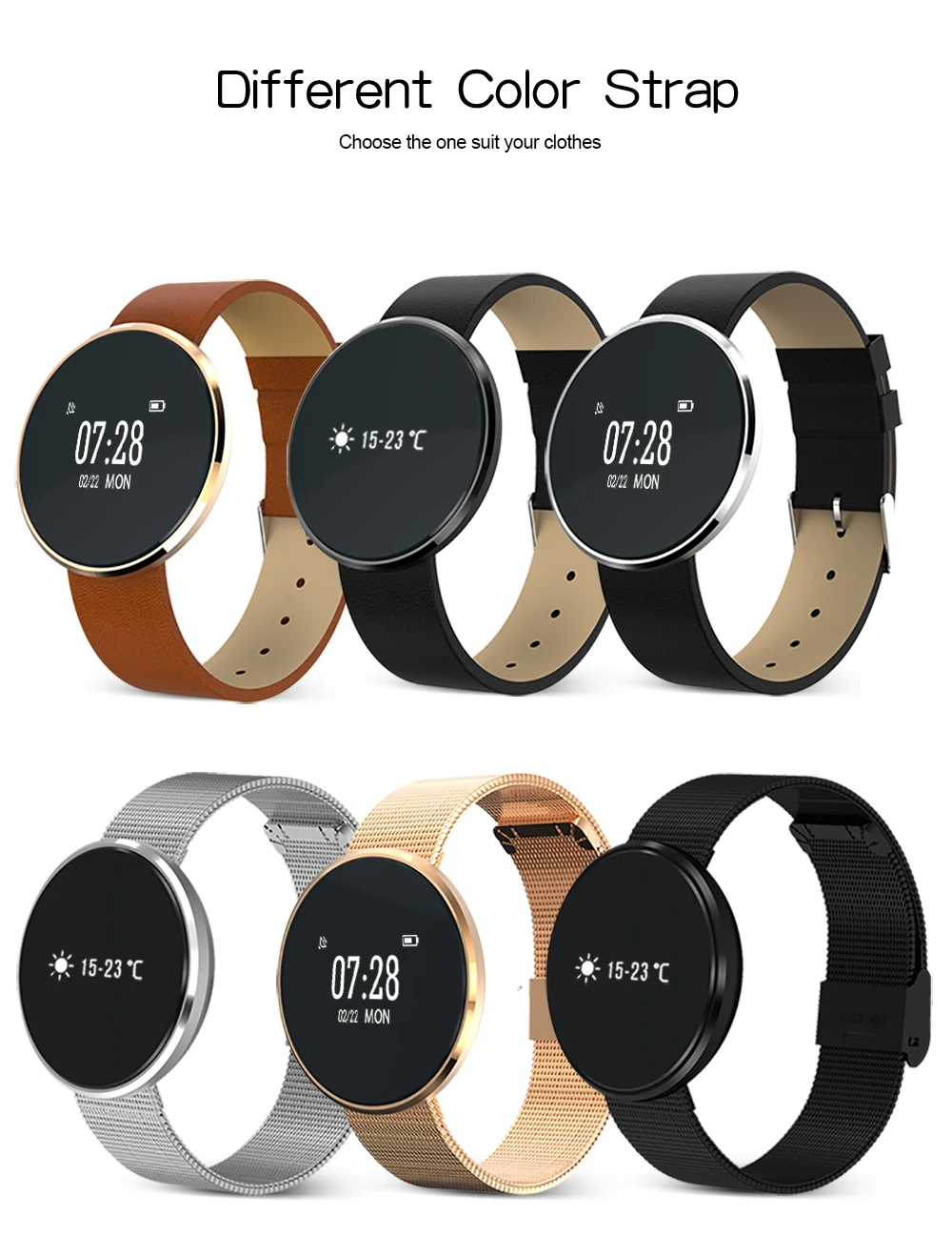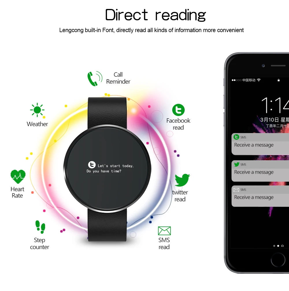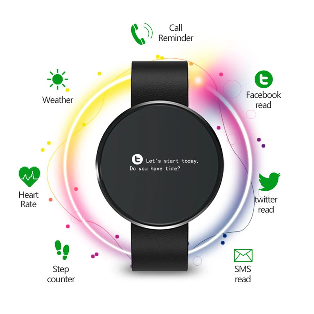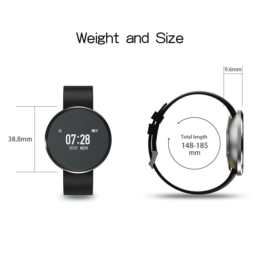Function:Alarm Clock,Passometer,Message Reminder,Heart Rate Tracker,Call Reminder