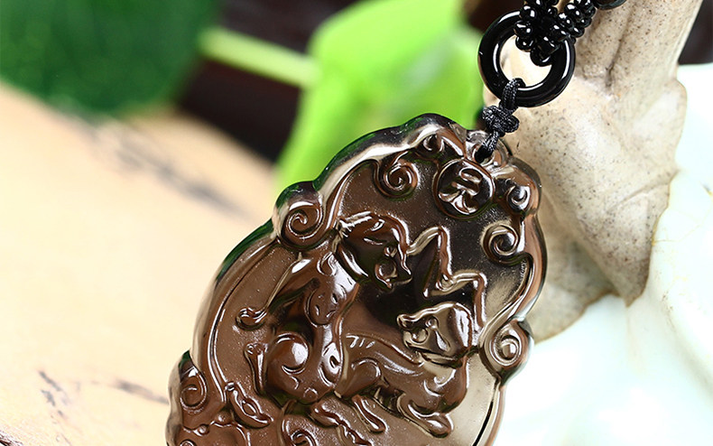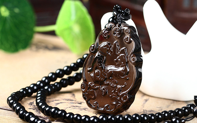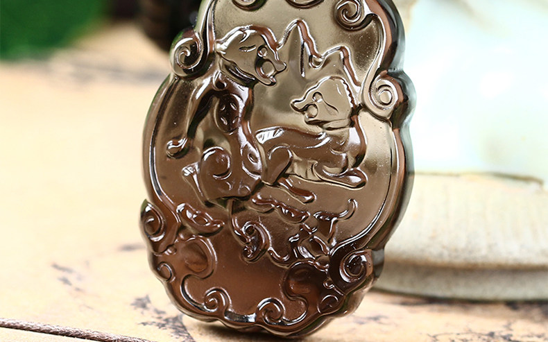 开光本命年吉祥物黑曜石吊坠12生肖属狗财福双犬尊选款