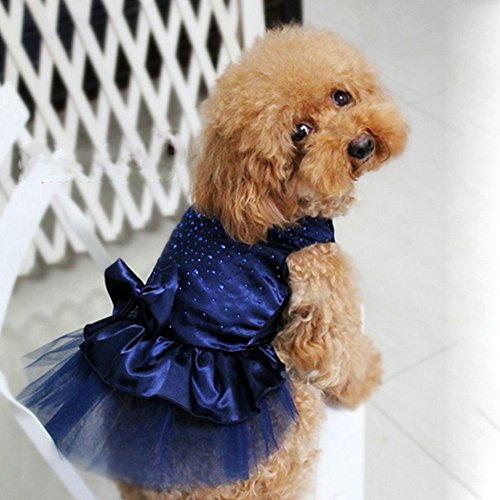 -. Feature : Type: Dog Tutu Dress. Gender: Female. Material: Imitated Silk, Gauze. / Fit for:( Asian size smaller than US,EU size, please check detail size before your purchase to fit most. )Chihuahua, Poodle, Cup Poodle, Pomeranian, Yorkshire Terrier, Bichon Frise, Cocker Spaniel, etc / Features: Bowknot, Sequin, Gauze Tutu Dress / Wearing it, your pretty pet will like a little eye-catching princess. / Lovely bowknot with shiny sequins, this tutu dress is so sightly.