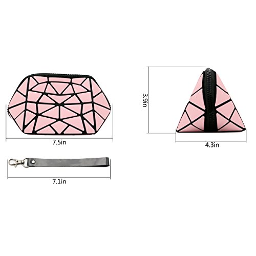 - SIZE - 7.5"L x 4.3"W x 4.7"H,This is a great makeup bag for a small purse.This bag is able to fit your essentials for the day.powder,blush, eyeshadow,concealers,brow gel,lipgloss and so on.And the strap is removable,about 4.8 inches.This bag can also besed as a handbag when you go out,It can put into a iphone7P+coin purse+keys+lipstic+BB and more.
