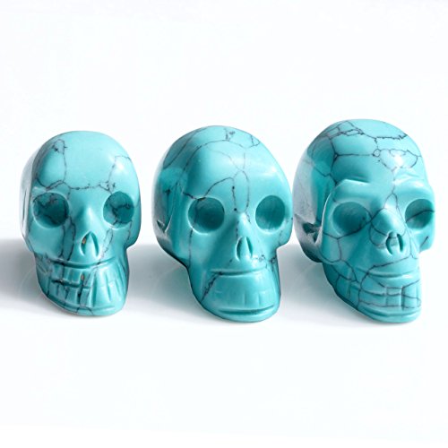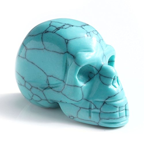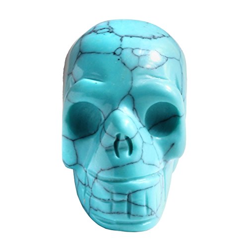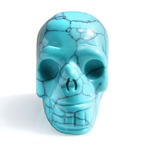 JOVIVI Hand Carved Howlite Turquoise Skull Head Figurine Healing Crystal Reiki Statue 1.5" w/Box