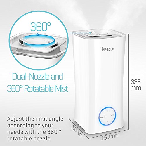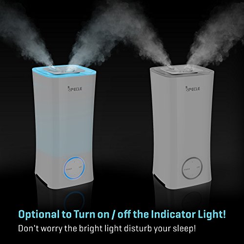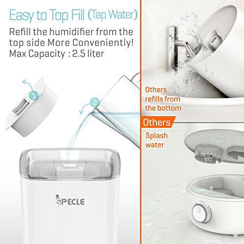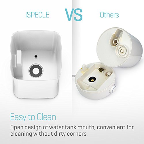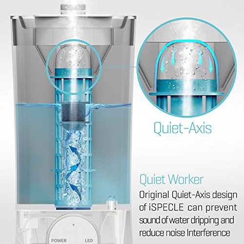 Studio : iSPECLE Publisher : iSPECLE Binding : Kitchen Product Description Upgraded InformationThanks for valued customers' suggestion, we have upgraded this ultrasonic humidifier to meet more requirements. 1) Option for Turned on/off the indicator light!It's available to turn on as well as turn off the indicatot light now.2) Produce mist more quickly!For this new version, the mist will become stable within 5 minutes now. (The old version is about 15 minutes or 20 minutes) Tips for Installation1.Put the floater into the axis-like floater pile, make sure the side with letter "UP" of the floater should be Upside;2.Twist the floater pile with the top translucent cover;3.Fill the humidifier with Tap Water (Water level should be lower than the maximum position;4.Place the translucent cover with the water tank without leaving any space;5. Finsh Easy to Top Fill (Use Tap Water)Humanization design for filling this air humidifier from top side more conveniently. It's not necessary to screw the bottom like other brands' humidifiers. Easy to CleanThis white tower shaped humidifier adopts Open design of water tank mouth, which is convenient for cleaning without dirty corners, we suggest you to use vinegar to clean it; Quiet-Axis Design for Quiet Working for YouUnique Quiet-Axis Design helps stream the waterdrops down without noise when the mist condense into water; 360 Degree Rotatable Mist Nozzles2 nozzles are available for adjusting the directions you prefer to; Simple and Elegant for home, bedroom, study, living room as well as office etc.. 7 Changing Colored Night Light (Could be Turned on/off)Soft Soothing but not dazzling, sleep with ease; Filter FreeSimpe for operation, Not necessary to replace filter inconveniently during usage iSPECLE offers 12 months warranty for this humidifer 0