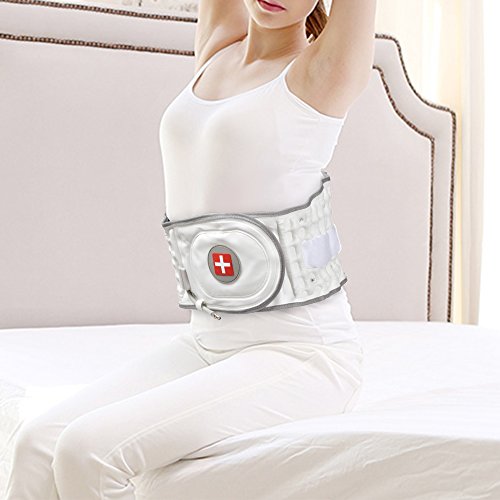 -. Feature : Adopted traction design P.R.Inciple, the spinal traction belt can achieve continue traction and supporting function / Reduce pain and pressure on pinched nerves and protect you from the torture of lumbar vertebra diseases / You can use the back belt at anytime and any place, for example, when you are working, washing, watching and etc / Great gift for the people who have the job that needs long time driving and sitting / When fully inflated with air it can keep the condition of the supporting the bones and decrease the pressure about several hours