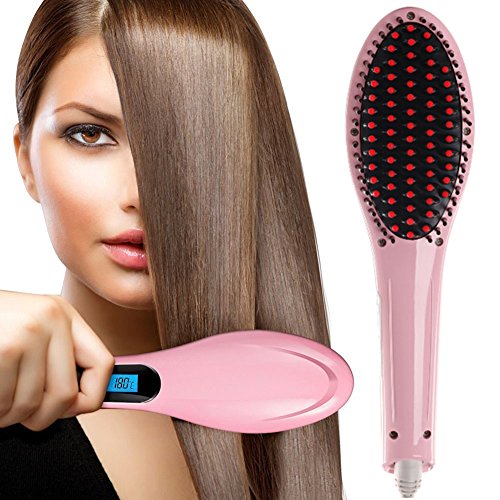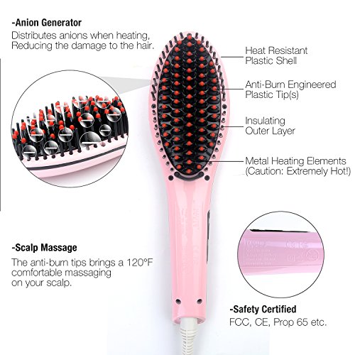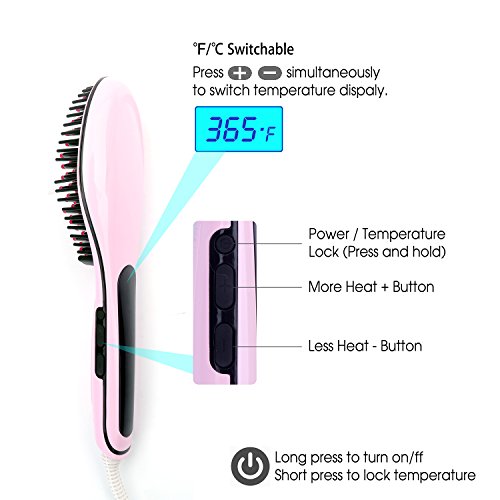 Title : ChiTronic® Women Hair Quick Straightener Electric Ceramic Rebonding Comb Brush Head Massager, °F/°C LCD Accurate Temperature Control (U.S. Plug, Pink)