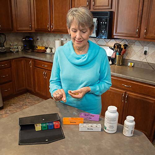 (Stuff Seniors Need)/Medical Supplies Equipment/Mobility Daily Living Aids/DIRECT FROM USA/Extra Large 7-Day Weekly Pill Organizer Box Leather Case? XL Travel Medication Reminder Daily A...