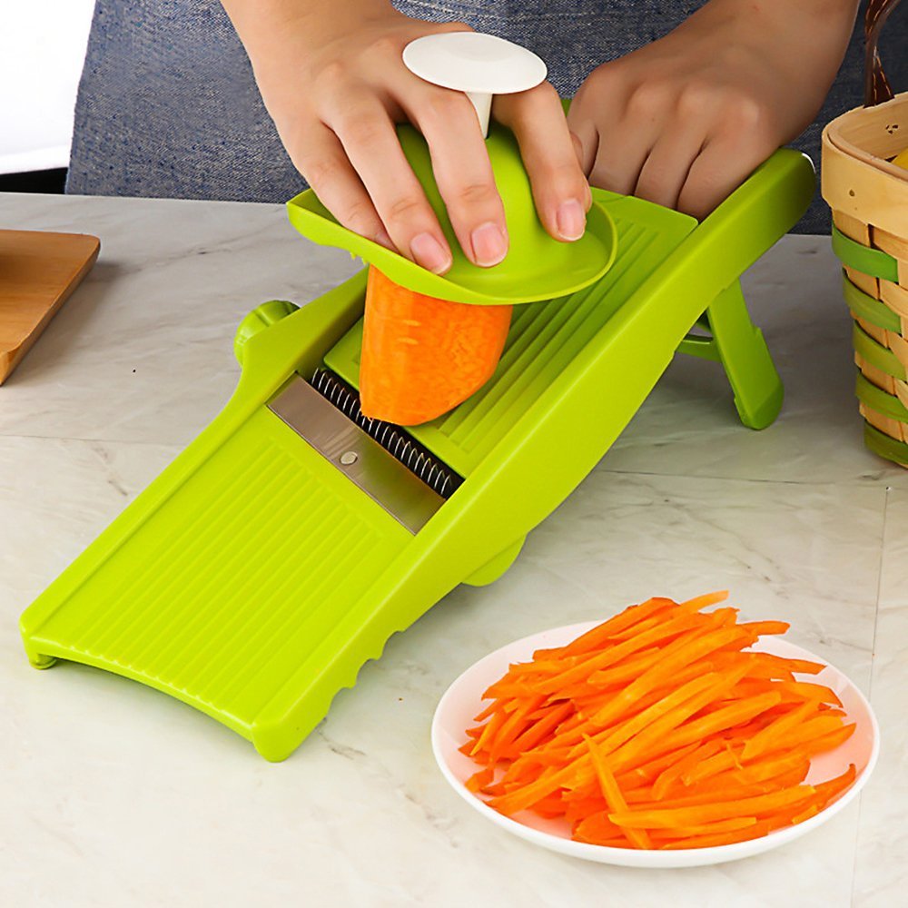 Adjustment of thickness of blade and ingredients all in one knob!