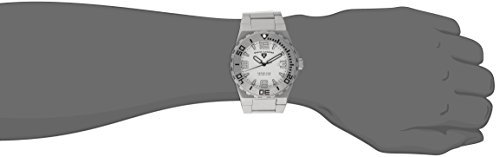 -. Feature : Matte grey stainless steel watch with logoed silver dial featuring date window at three o'clock position and unidirectional bezel / Swiss quartz movement with analog display / Protective synthetic sapphire crystal dial window / Features screw-down crown and triple-link bracelet secured by invisible double-locking clasp closure / Water-resistant to 200 m (660 ft)