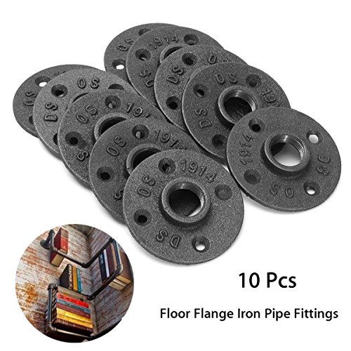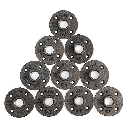 KINGSO 10 Pack 3/4'' Black Malleable Iron Floor Flange Pipe Fittings, Perfect for Industrial Pipe Furniture and DIY Decor (3/4“)