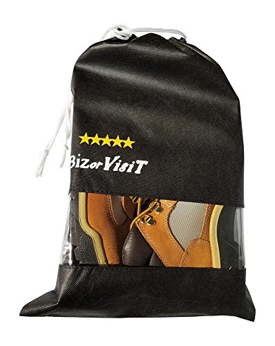Product Description Biz or VisiT shoe bags are Great for traveling or storing and organizing your belongings at home; High-quality non-woven fabrics, supper light-weight, durable, reusable, easy to clean, dual drawstring closure, convenient front clear window; Protect your shoes, separates dirty shoes from the clothes in your suitcase; Use as Lingerie bag, Packing cubes for your clothes, Laundry bags to part the dirty clothes; Organize earbuds, USB, headphones, cords, wires, batteries, extensions; Carry organize or store diapers and toys, craft or school supplies; store delicate sandals as well smaller clutch purses. 0