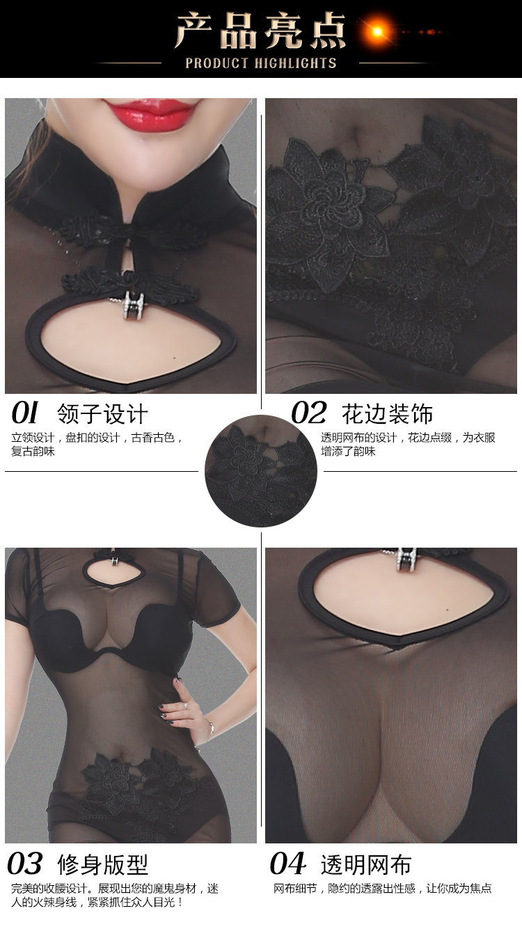性感透视网纱短袖连衣裙夜场情趣工作服开叉包臀短裙极度诱惑旗袍